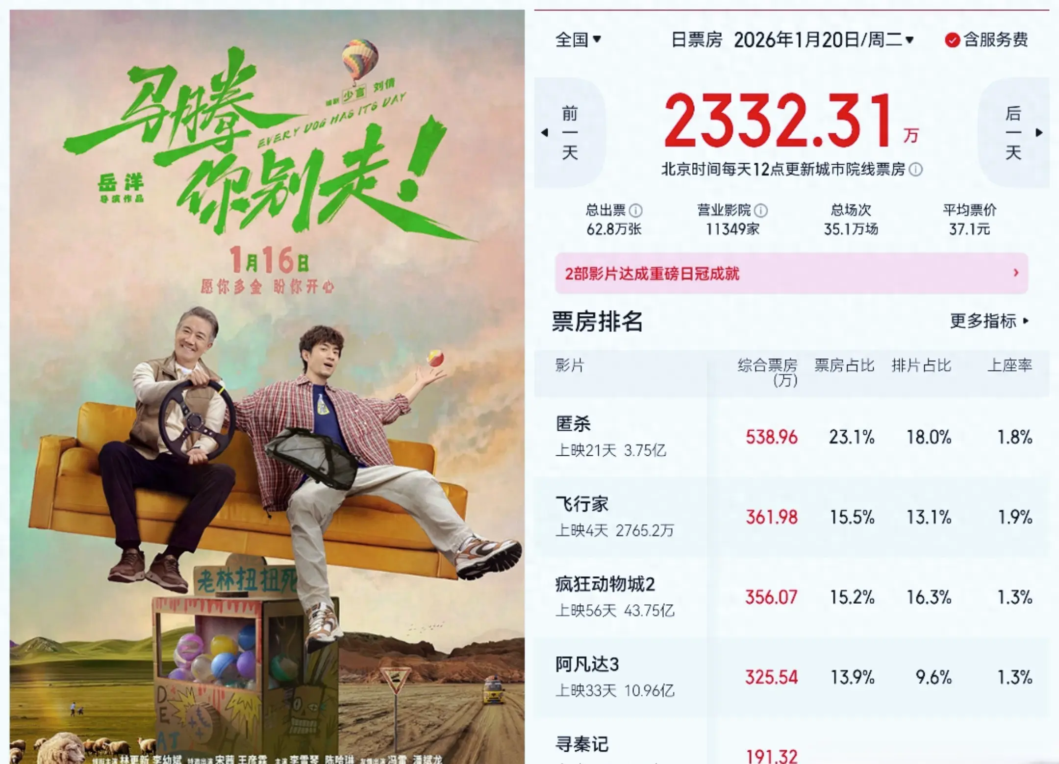 那天是周一,没什么大事发生。1月20号,不是节日,也没啥热搜爆点,但翻票房数据的时候,发现挺多片子在这一天悄悄变了天。《匿杀》还是日冠,一天拿了五百四十万,总票房快四亿了,按成本算,早就回本还赚了一大截。可奇怪的是,这片子猫眼没评分,豆瓣连条目都没有,网上几乎没人讨论。赢的是钱,输的是声量。